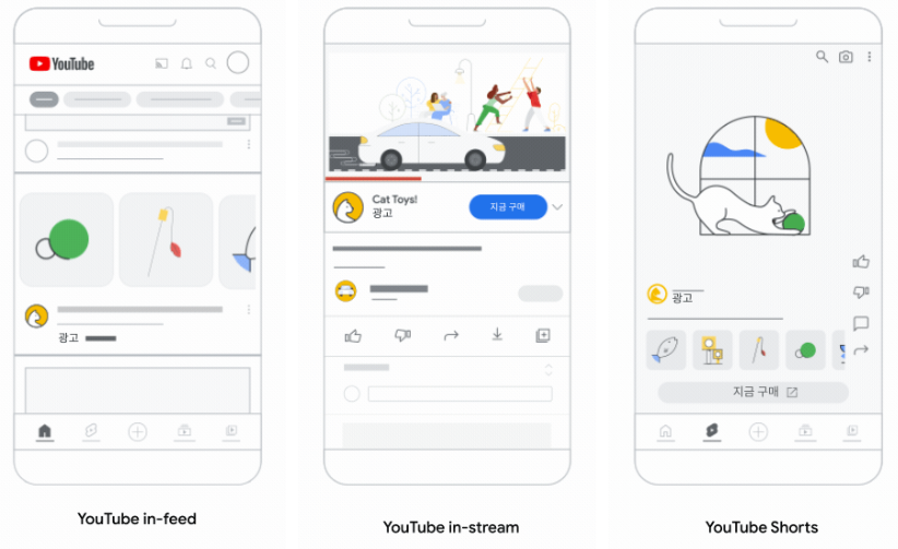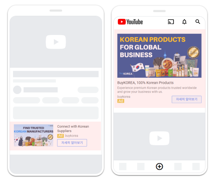 - 인피드 동영상 광고: 검색 결과·홈피드·추천 영상 피드에 미리보기 형태로 노출