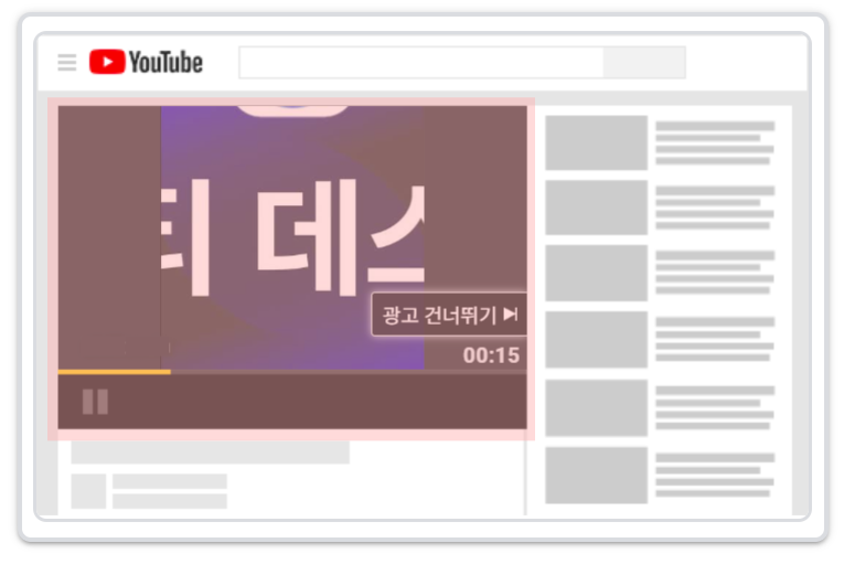 - 건너뛸 수 있는 인스트림 광고: 영상 시작 전·중간·끝에 삽입 (5초 후 건너뛰기 가능)