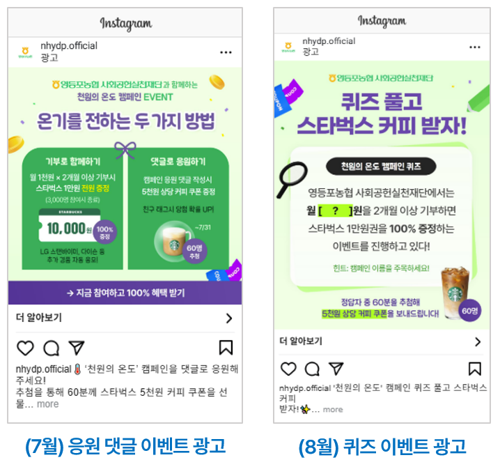 - 신속한 전략 수정: 초기 기획했던 ‘응원 댓글 이벤트’는 참여율이 예상보다 저조하였습니다. 이에, 좀 더 쉽게 참여 가능한 퀴즈 이벤트로 전략을 수정했습니다.