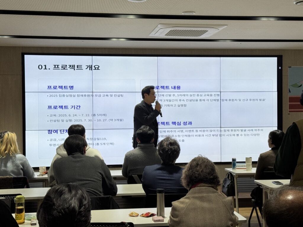 - 프로젝트명: 2025 집중실험실 잠재후원자 모금 교육 및 컨설팅